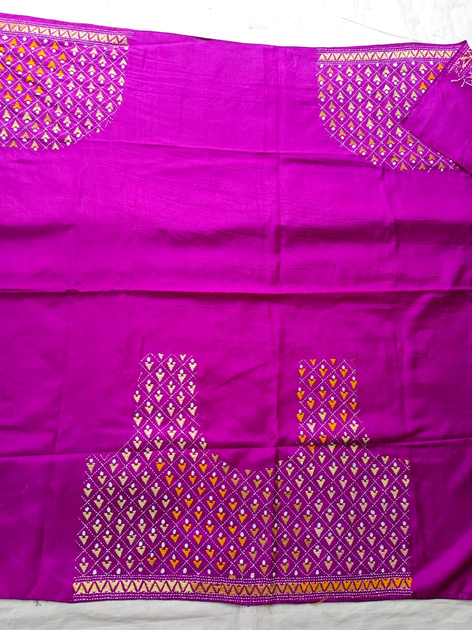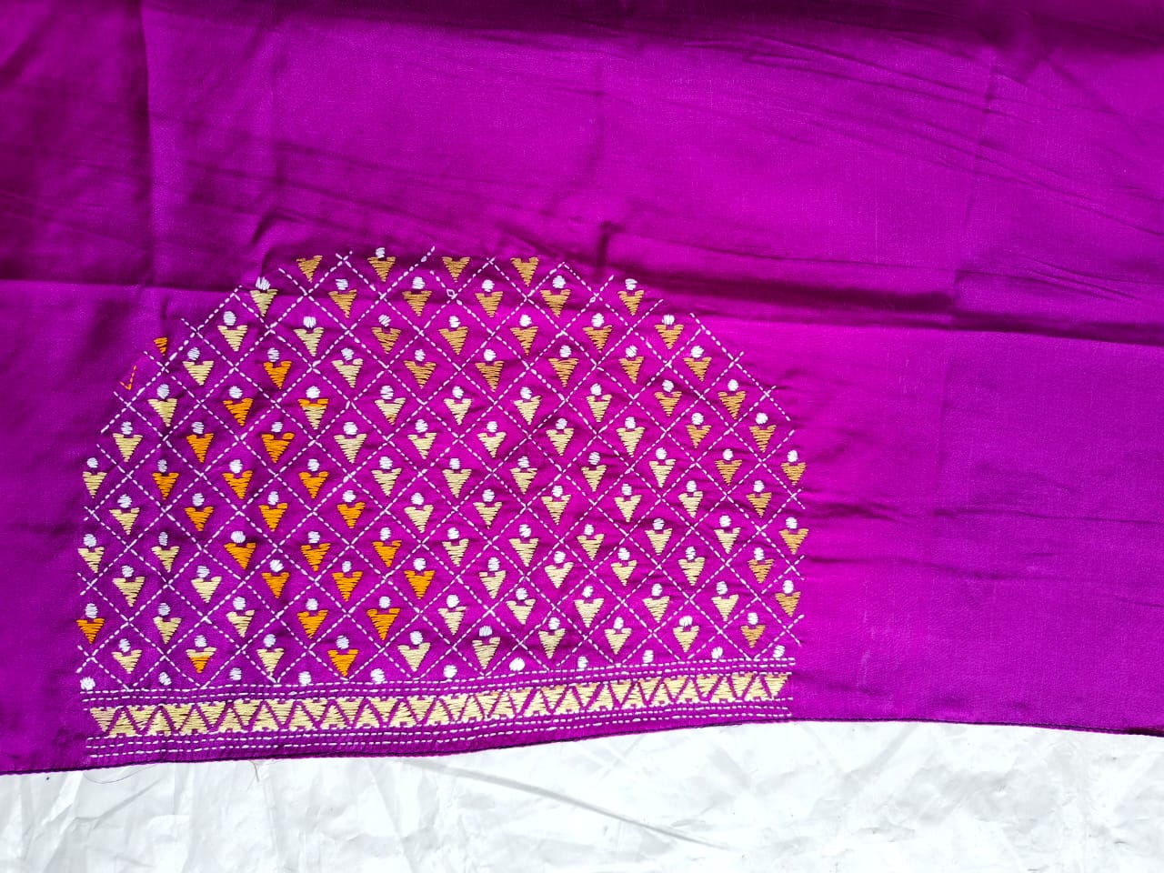 ✨ Bring a touch of pure Bengali tradition to your outfit with this Kantha stitch blouse material.
