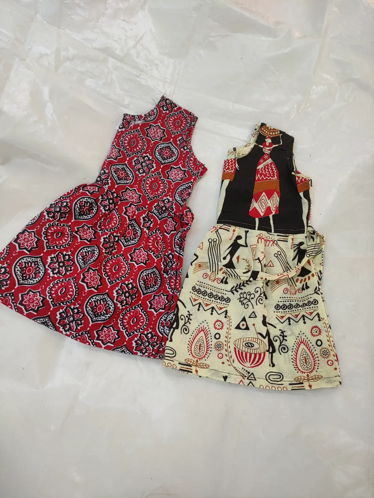 Maroon colour Azrakh and Junglee printed gowns frock for kids (quantity 2 piece)