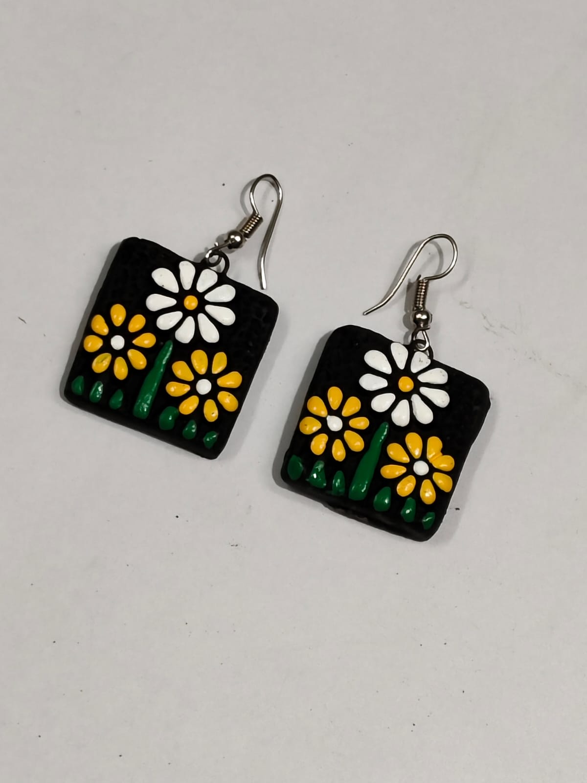 Terracotta Earring Black and white yellow flowers