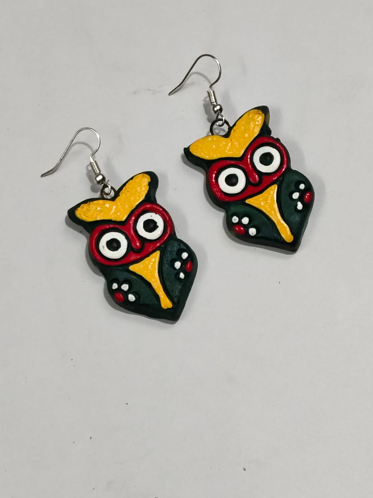 Terracotta Earring Black Colorful owl Motif