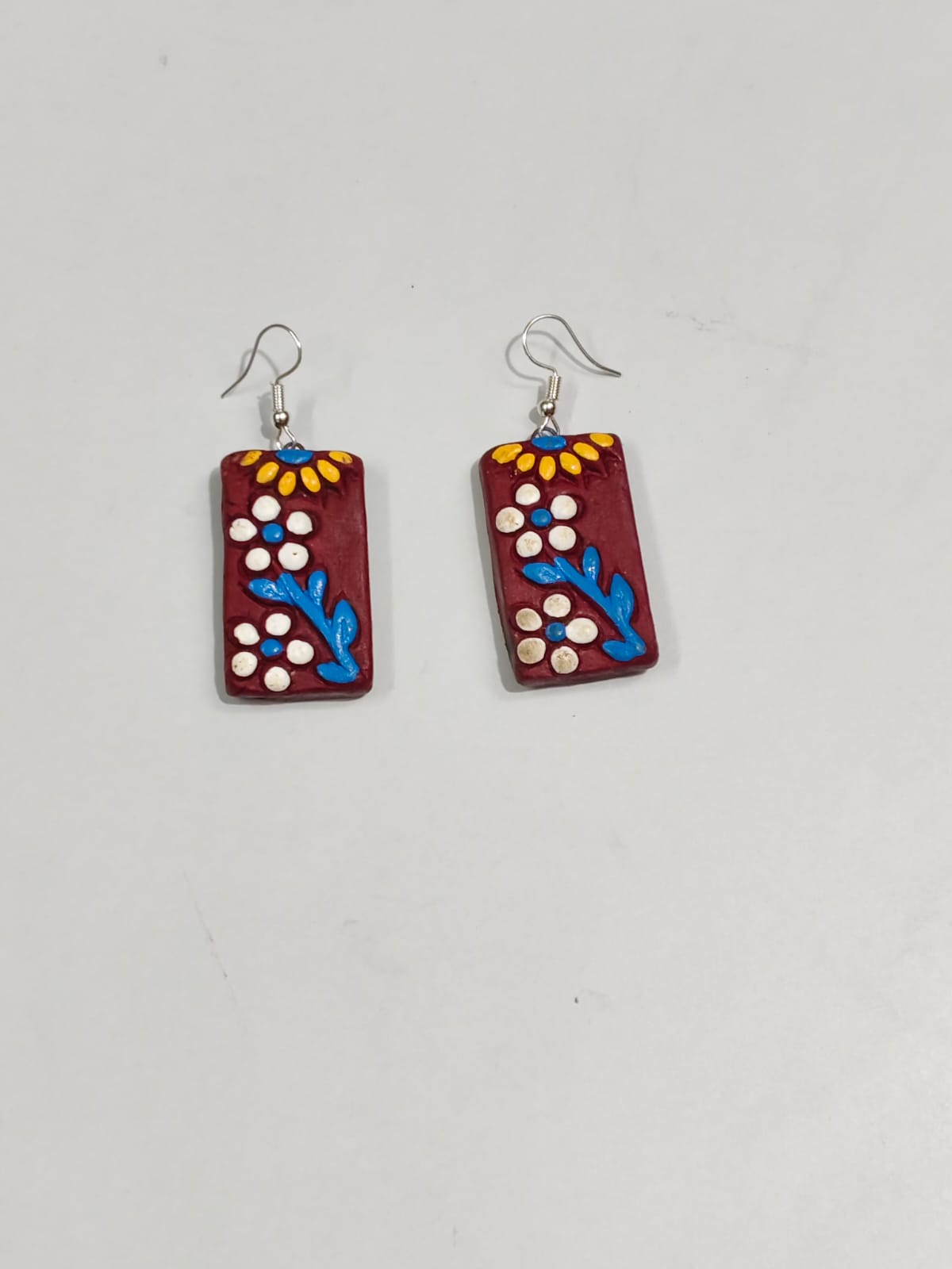 This Terracotta earrings features terracotta flower, Colour Terracotta Handicraft earrings (1 pair of earrings)