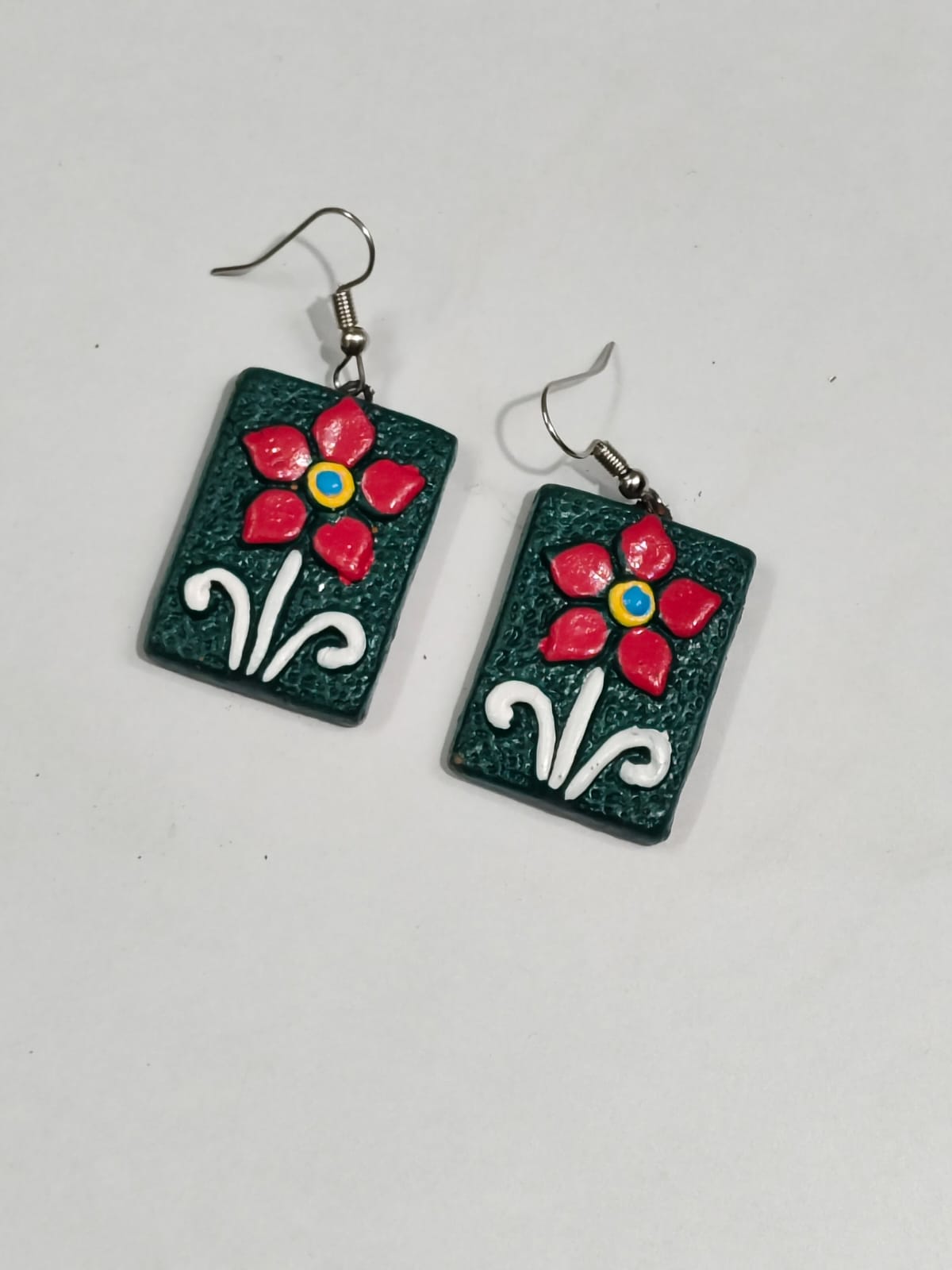 Terracotta Earrings Greenish red flower