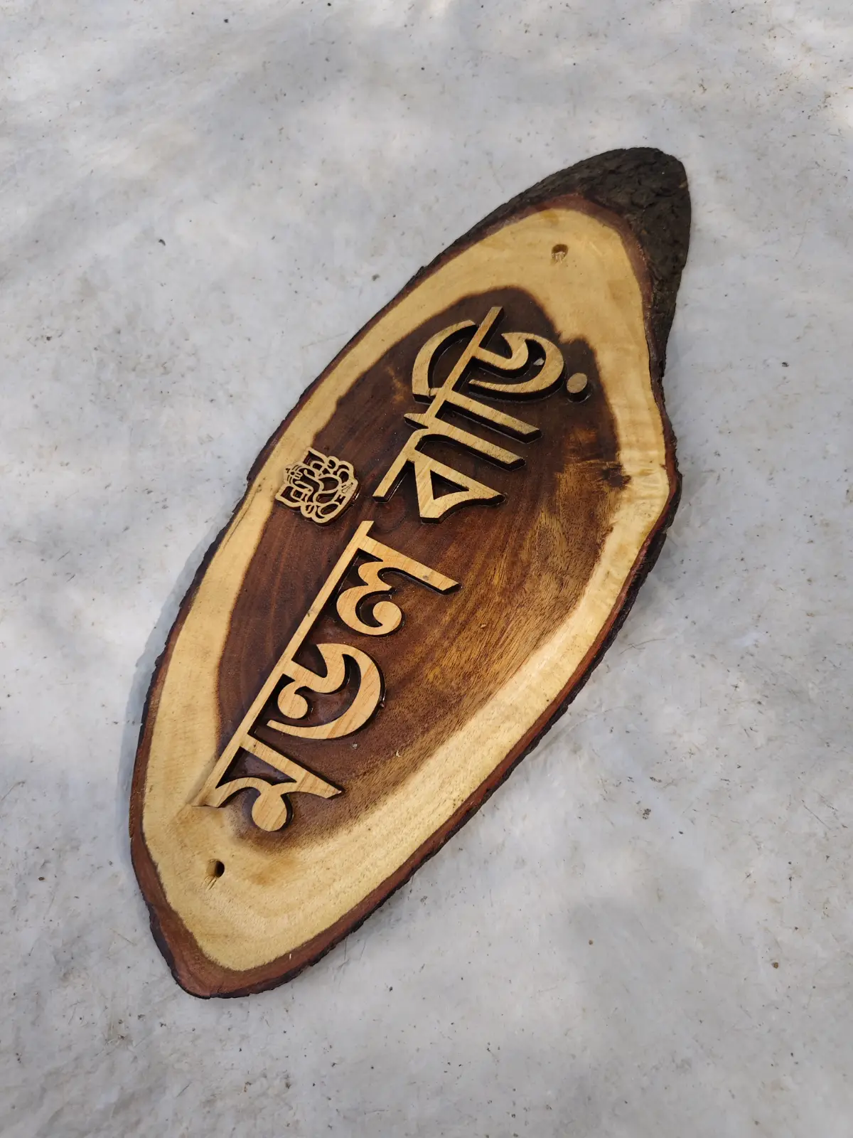 Wooden Carved Surname Name Plate (মন্ডল বাড়ি) Mandala house