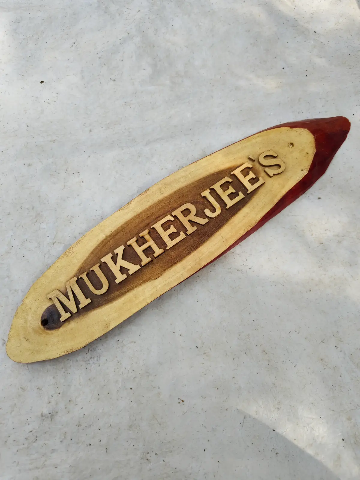 Wooden Carved Surname Name Plate (Mukherjee,s)