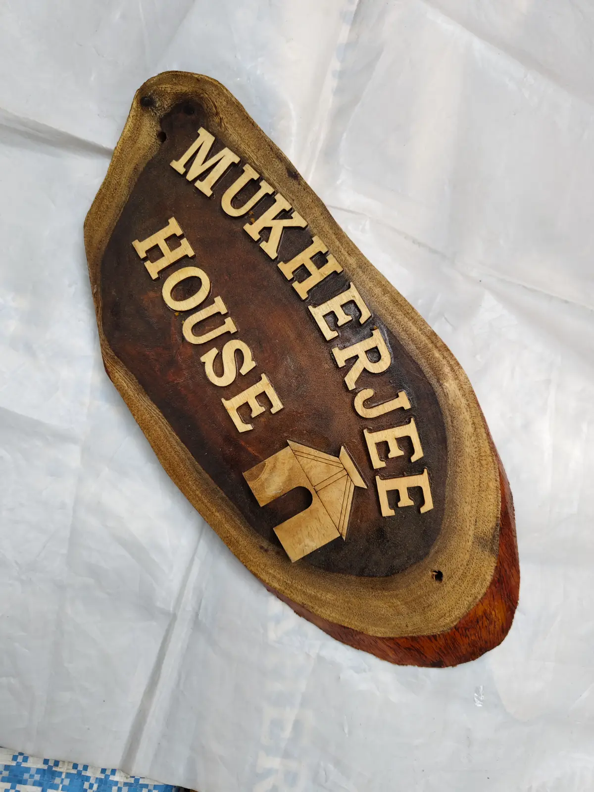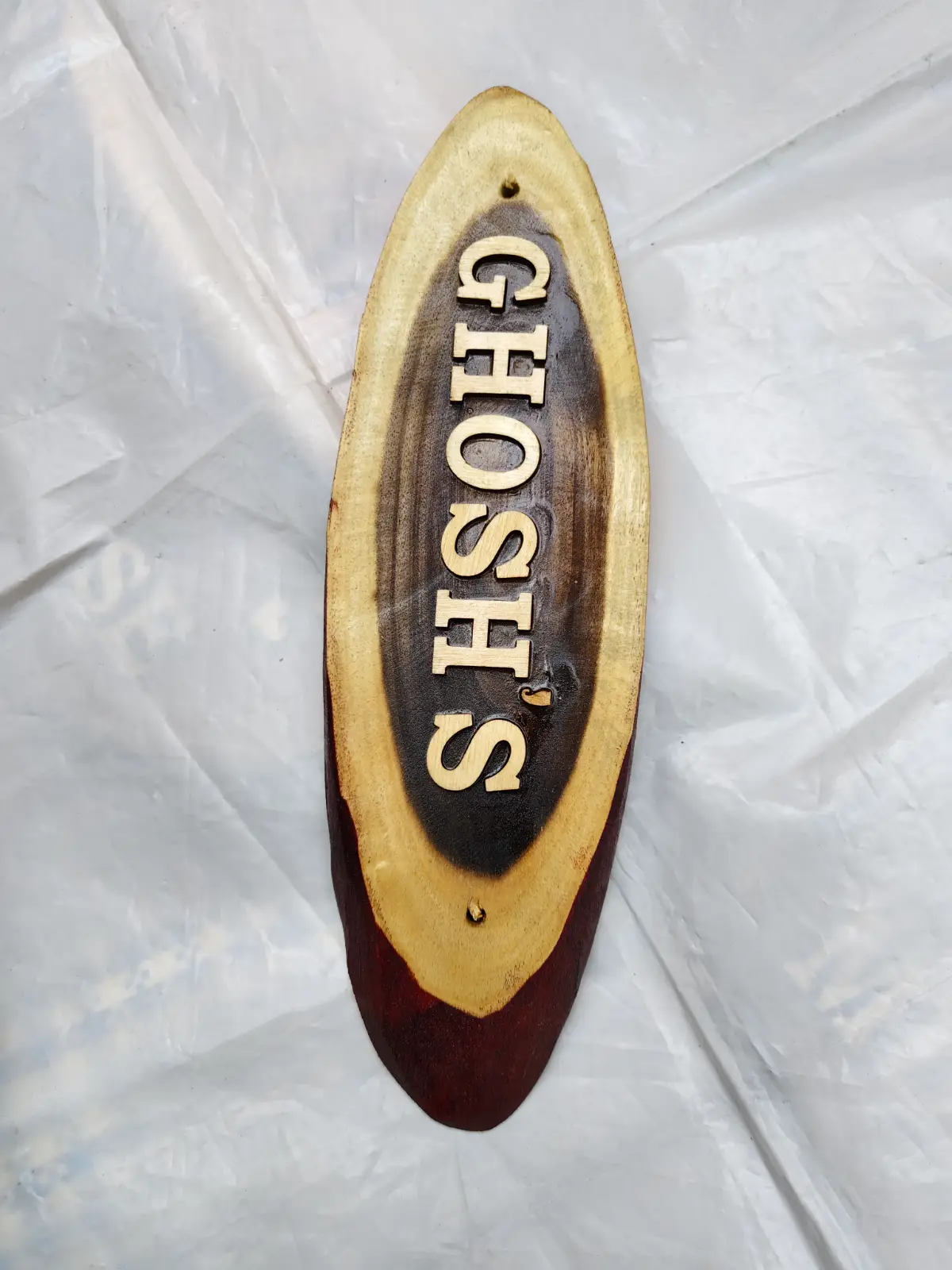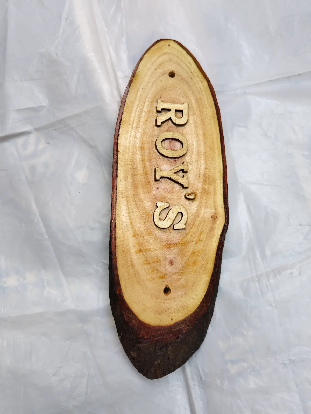 Wooden Carved Surname Name Plate (Sitting on a branch)