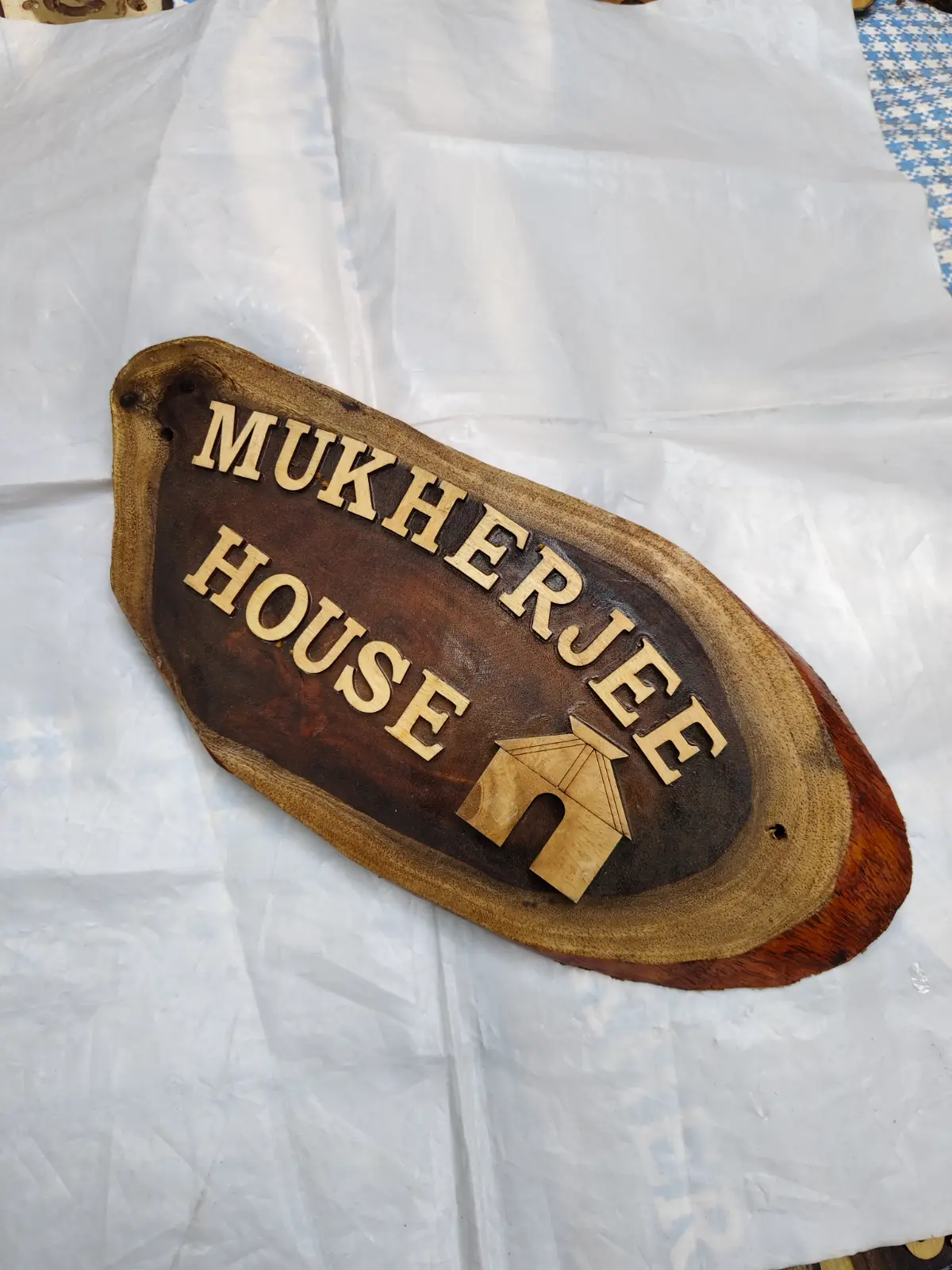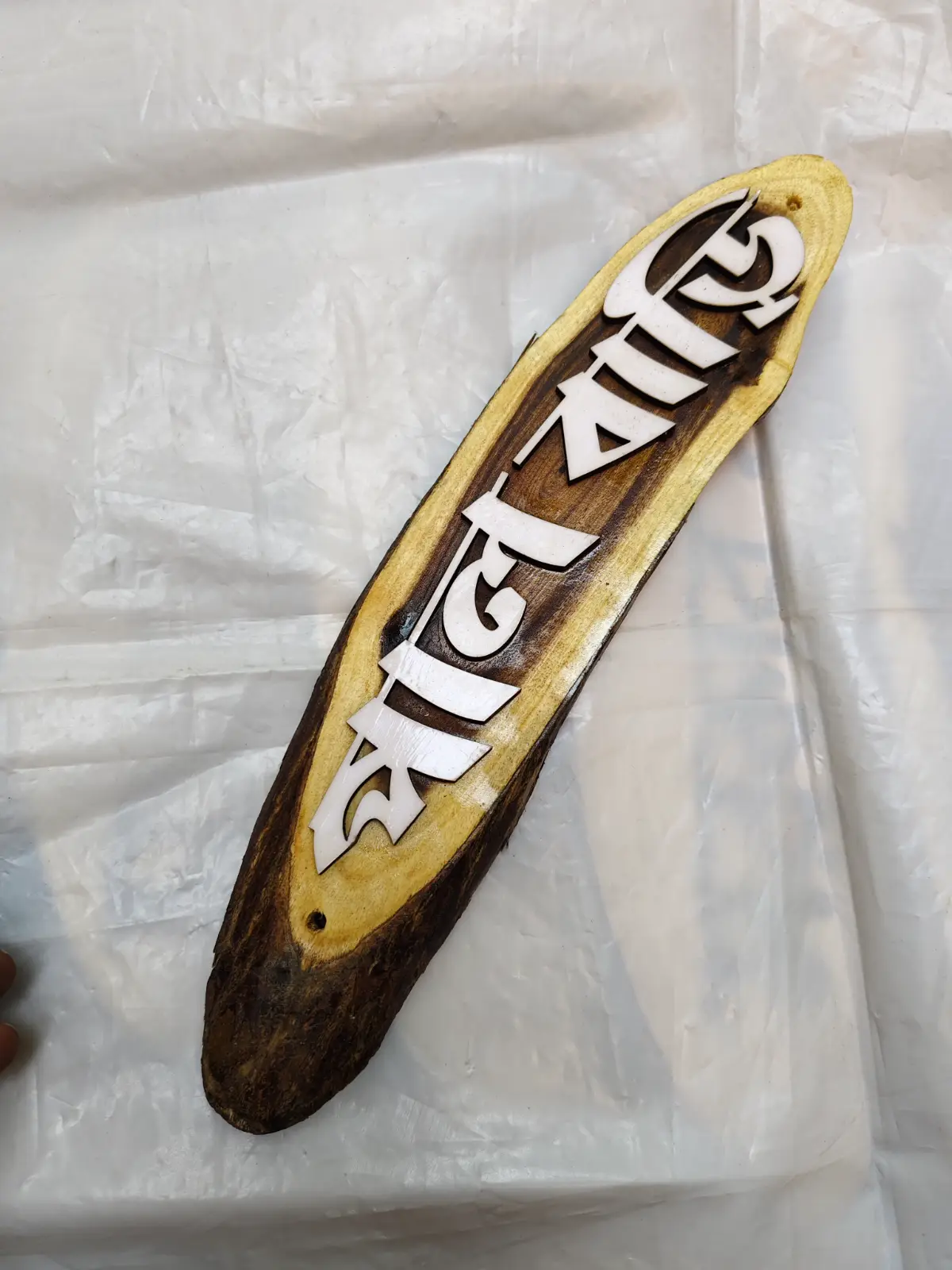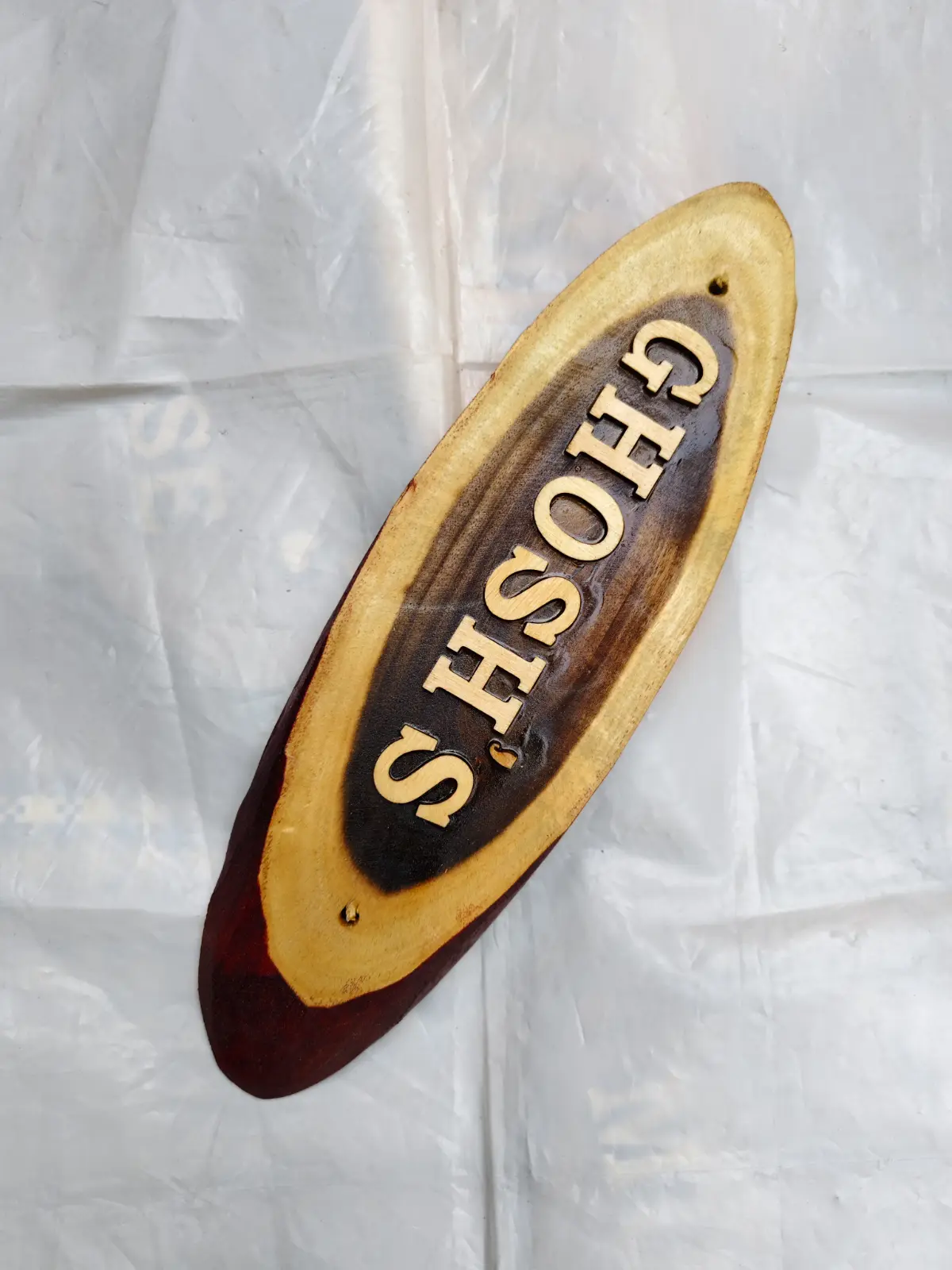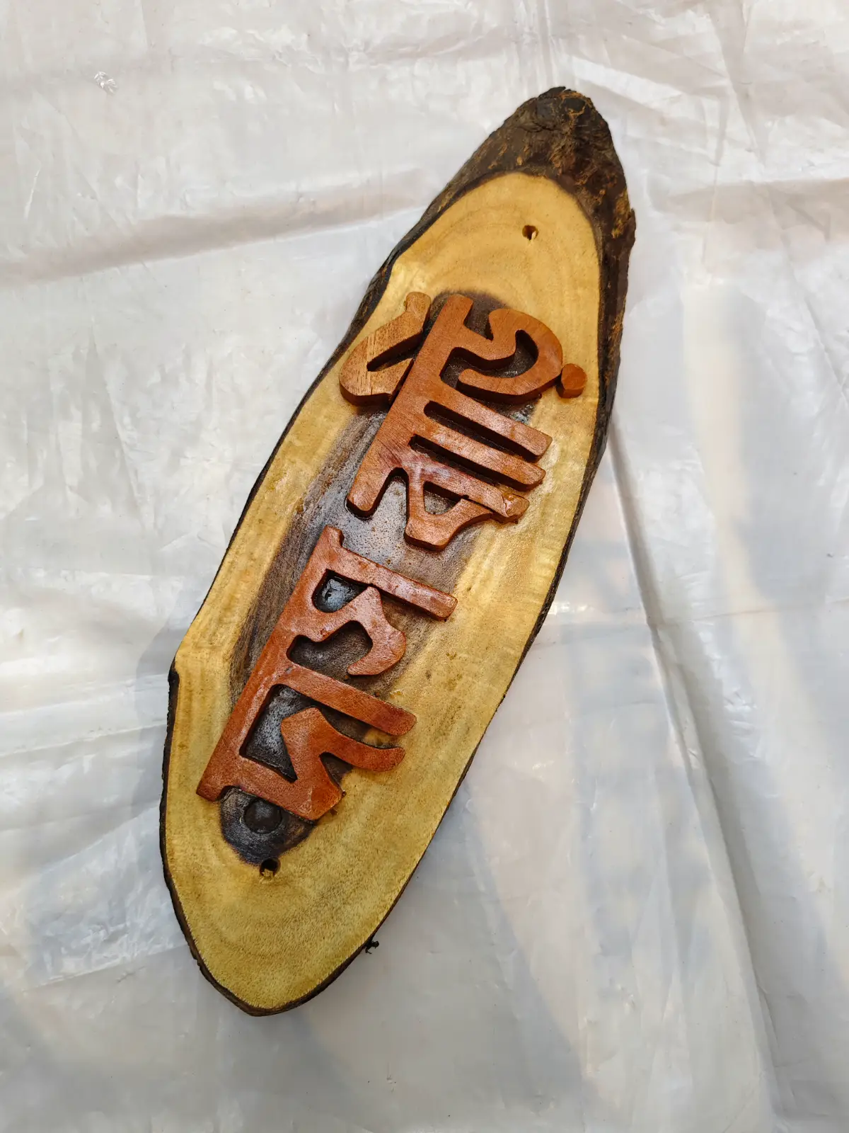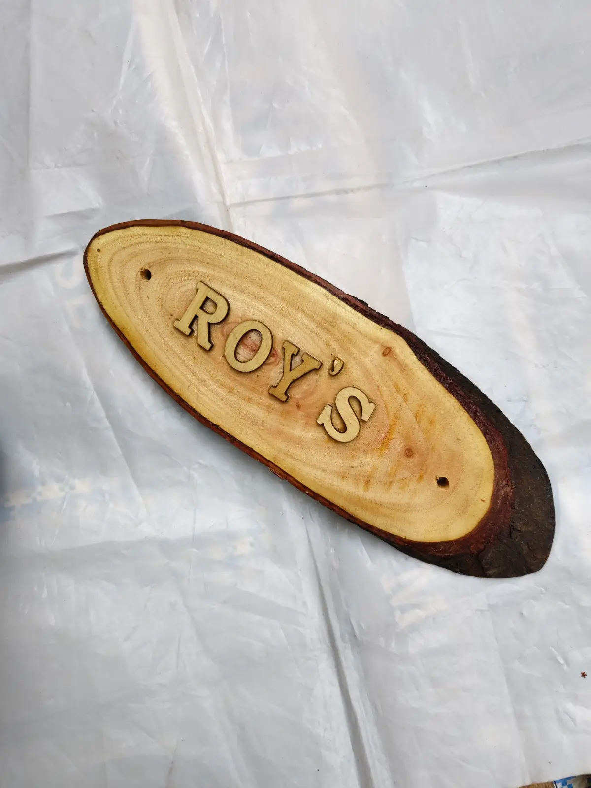 Wooden Carved Surname Name Plate (Sitting on a branch)