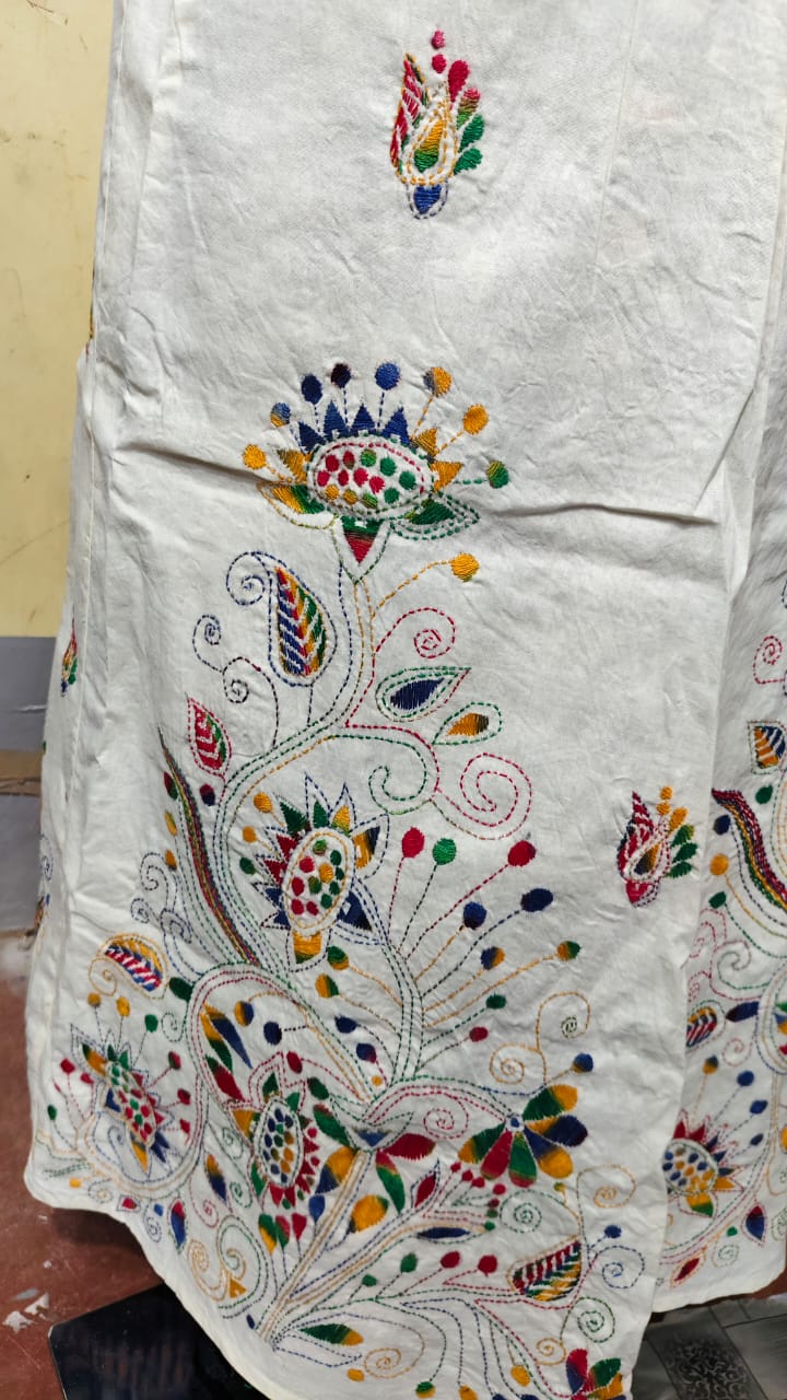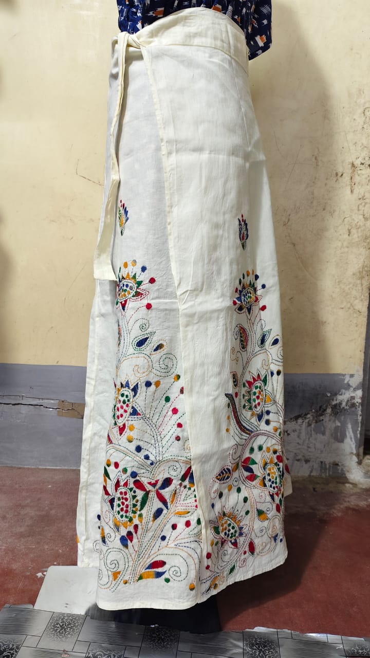 Wrapper Skirt with Handmade Kantha Stitch Cream colour