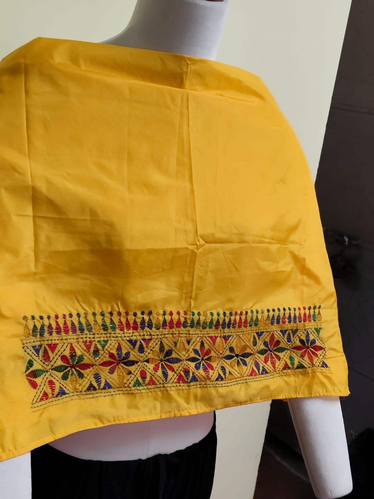 Handicraft:- only border style handwork Kantha stitch | Material: high-quality silk fabric, Cloth 44/36 inches (Quantity 1 piece)