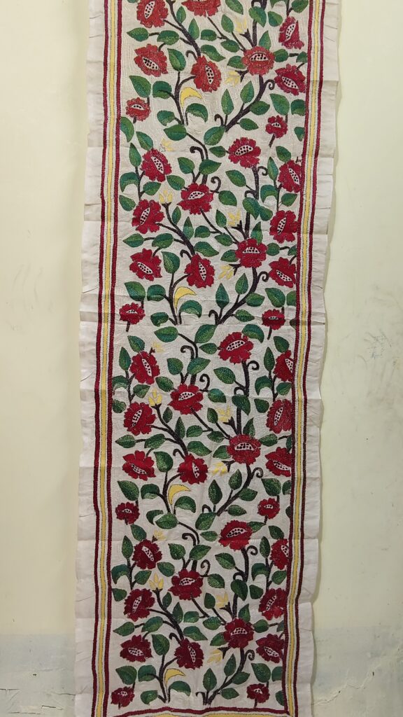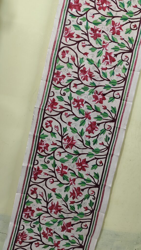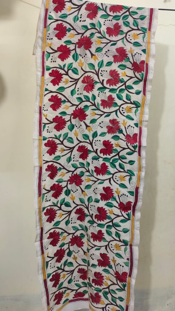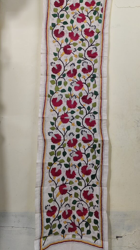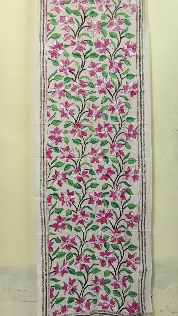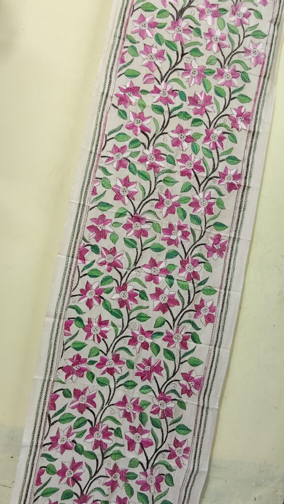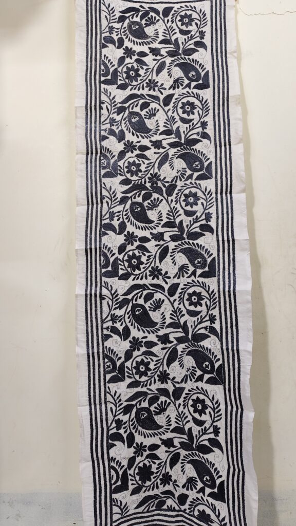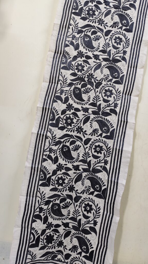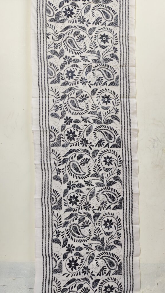Premium Black Cotton Kantha Stitch Blouse Material – Floral Embroidery