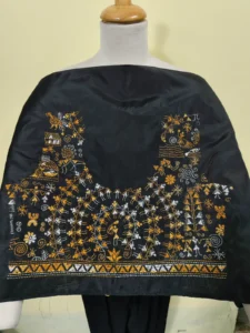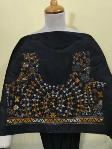 Premium Black Cotton Kantha Stitch Blouse Material – Floral Embroidery