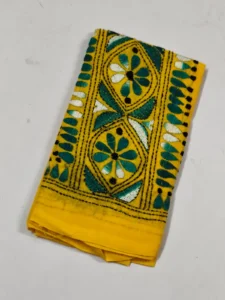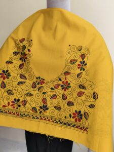 Kantha Stitch Blouse Piece Mustard Yellow – Bird motif design