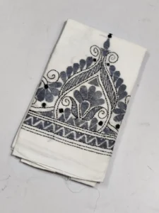 Kantha Work Blouse Material – Gray color Threadwork Base Of-White