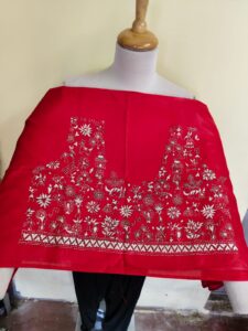 Cotton kantha stitch all over blouse piece (colour Red )