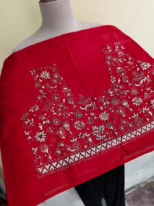 Maroon Silk Kantha Stitch Blouse Material – Handcrafted Bird & Floral Motive design